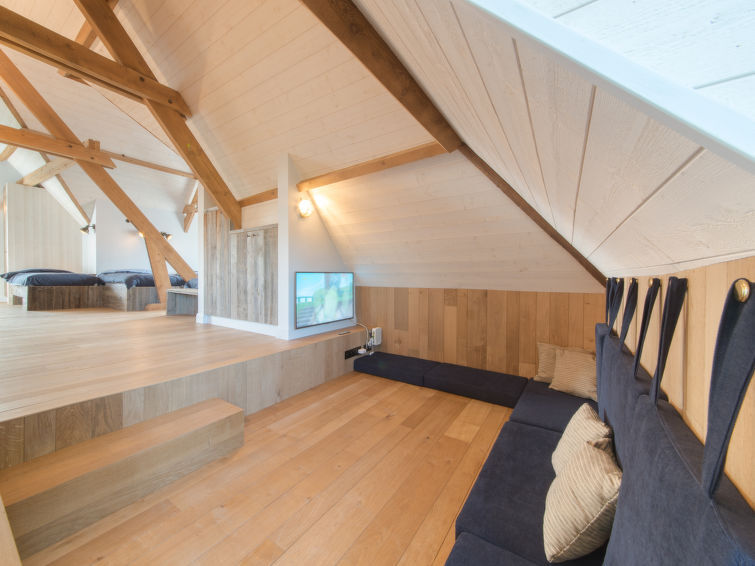 Villa 7 pièces 285 m2 sur 3 niveaux. Spacieux et clair, complètement rénovée en 2020, aménagement de bon goût et plaisant: entrée avec chauffage a gaz. Grand séjour avec TV et chaînes de TV internationales (écran plat). Petit séjour avec TV et chaînes de TV internationales (écran plat). Grande cuisine ouverte (four, lave-vaisselle, 5 plaques vitrocéramiques, grille-pain, bouilloire électrique, micro-ondes, congélateur, cafetière électrique) avec bar, table pour les repas. 2 WC séparés. À l'étage supérieur: 4 chambres doubles, chaque chambre avec: 1 grand-lit (180 cm, longueur 200 cm), lavabo et douche/WC. 2ème étage: 1 grande chambre d'enfants avec 6 lits (90 cm, longueur 200 cm), TV et chaînes de TV internationales (écran plat). Douche, WC séparé, double vasque. Sol en bois. Petit balcon, situation nord-ouest, terrasse 32 m2, situation sud-est, grand jardin, pelouse. Meubles de terrasse, barbecue. Belle vue sur les alentours et le canal. A disposition: chaise haute pour enfant, lit bébé, sèche-cheveux. Internet (Connexion WIFI, en sus). Veuillez noter: maison non-fumeur. Détecteur de fumée, extincteur, sans ascenseur.