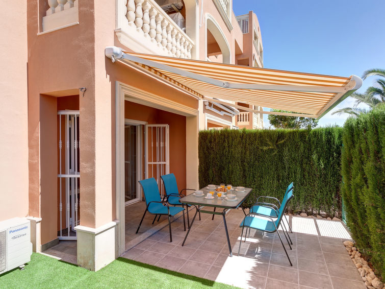 "Rincón del Mediterráneo", apt 3 pièces 47 m2, au rez-de-chaussée. Aménagement confortable et plaisant: séjour/salle à manger avec Télévision numérique, écran plat, air-conditionné et chauffage à air chaud. Sortie sur la terrasse, sur la piscine. 1 chambre avec 1 grand-lit (150 cm, longueur 190 cm), air-conditionné et chauffage à air chaud. 1 chambre avec 1 x 2 lits superposés (90 cm, longueur 200 cm), 1 lit gigogne (1 pers. 2 x 90 cm, longueur 200 cm). Cuisine ouverte (four, 4 plaques vitrocéramiques, micro-ondes, congélateur, cafetière électrique). Douche/WC. Terrasse 15 m2. Meubles de terrasse. Vue sur la piscine et le jardin. A disposition: lave-linge, chaise haute pour enfant, lit bébé. Internet (Connexion WIFI, gratuit). Place de parking No 19 (couvert). Veuillez noter: maison non-fumeur. AT-458533-A // Reg. Nr.: ESFCTU00000304500083935600000000000000000AT-458533-A8