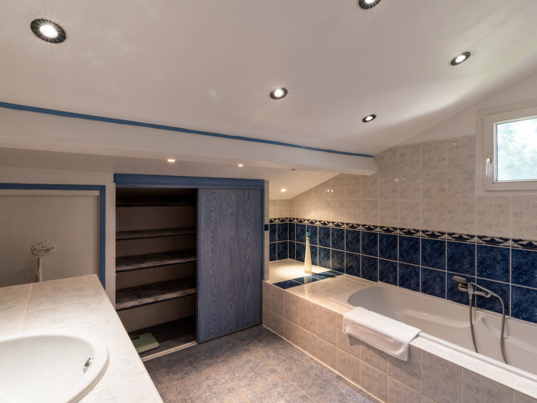 Maison 4 pièces 90 m2 sur 2 niveaux. Aménagement confortable: séjour/salle à manger avec cheminée (uniquement à titre de décoration), TV (écran plat), air-conditionné. Sortie sur la terrasse. 1 chambre avec 1 grand-lit (160 cm, longueur 190 cm). Sortie sur la terrasse. Cuisine ouverte (four, lave-vaisselle, 4 plaques à induction, grille-pain, bouilloire électrique, micro-ondes, congélateur, cafetière électrique, Capsules pour machine à café (Nespresso) (NON INCLUSES)). Douche, WC séparé. Chauffage électrique. À l'étage supérieur: 1 chambre avec 1 grand-lit (160 cm, longueur 190 cm). Sortie sur le balcon. 1 chambre avec 1 grand-lit (160 cm, longueur 200 cm), air-conditionné. Sortie sur le balcon. Bain/douche/WC. Terrasse 20 m2, situation sud. Meubles de terrasse, barbecue, chaises longues (6). A disposition: lave-linge. Internet (Connexion WIFI, gratuit). Veuillez noter: logement non-fumeur. Détecteur de fumée. 2A2470016004A3