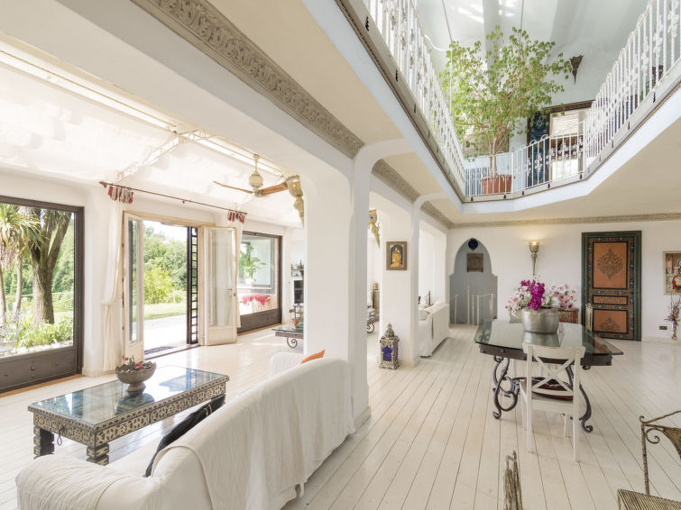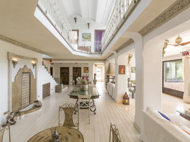 "Villa Oriental", apt 6 pièces 400 m2 sur 2 niveaux. Logement idéal pour 14 adultes + 2 enfants. Séjour/salle à manger 400 m2 avec cheminée, salle de bains, bain/douche/bidet/WC, hammam - douche, TV, chauffage a gaz et air-conditionné. Sortie sur le jardin. 1 chambre double avec 1 x 1 lits superposés, 1 lit double. 1 chambre double. 1 chambre double avec cheminée et douche/bidet/WC. Sortie sur le jardin. Grande cuisine/séjour (6 feux, grille-pain, bouilloire électrique, micro-ondes). Sortie sur le jardin. Salle de bains, douche/bidet/WC. À l'étage inférieur: salle de bains, douche/bidet/WC, hammam - douche, douche à jets, balnéo, Sauna. À l'étage supérieur: 2 chambres doubles avec baie vitrée. Douche/bidet/WC. Très belle vue sur les montagnes. A disposition: lave-linge, sauna, lit bébé, sèche-cheveux. Internet (Connexion WIFI). Place de parking. Maximum 1 animal/ chien autorisé. IT058042C2HFY2SZE8
