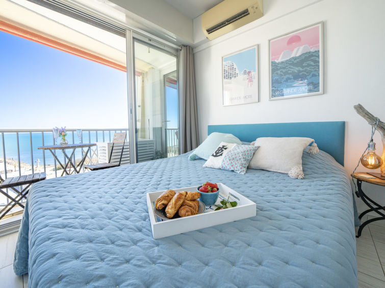 Appartement 2-kamers 44 m2 op de 8e verdieping, op het zuiden gelegen. Zeer comfortabel ingericht: woon-/eetkamer met 1 2-pers divanbed (160 cm, lengte 200 cm), TV (Flatscreen TV), elektrische verwarming en air-conditioning. 1 kamer met veranda met 1 2-pers bed (160 cm, lengte 190 cm), air-conditioning. Open keuken (oven, afwasmachine, 3 inductiekookplaten, broodrooster, waterkoker, magnetron, diepvriezer, elektrische koffiemachine). Douche, aparte WC. Elektrische verwarming. Klein terras 4 m2, op het zuiden gelegen. Terrasmeubelen. Zeer mooi uitzicht op zee en het landschap. Ter beschikking: wasmachine, strijkijzer, haardroger. Internet (Internet (WiFi), gratis). Parkeerplaats (1 Auto). Niet rokers woning. Rookmelders. Aanbod door een particulier volgens art. 155, IV van CGI. 30 04 503 039 356