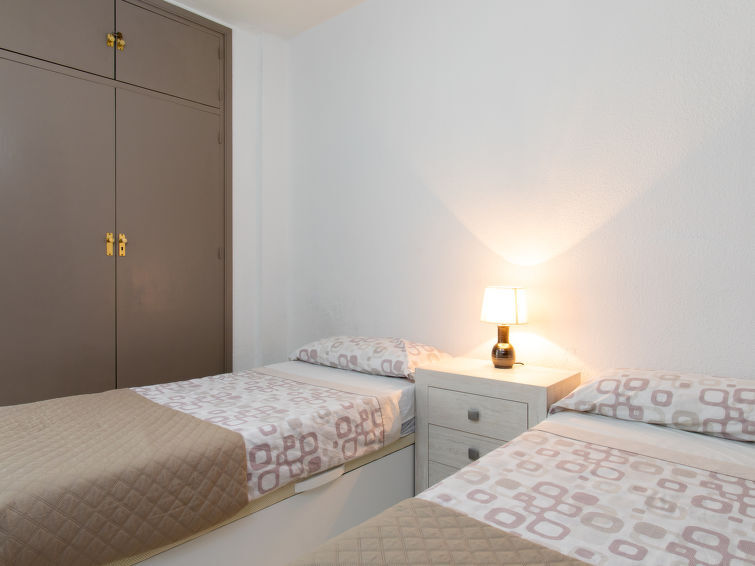 "Velilla", appartement 3-kamers 65 m2 op de 7e verdieping, op het zuiden gelegen. Licht, eenvoudig en doelmatig ingericht: woon-/eetkamer met Digitale TV. Uitgang naar het terras. 1 kamer met 2 bedden (90 cm, lengte 190 cm), ventilator. 1 kamer met 1 2-pers bed (180 cm, lengte 200 cm), ventilator. Open keuken in de hal (4-pits kookplaat, oven, broodrooster, waterkoker, magnetron, diepvriezer, elektrische koffiemachine, pads voor de koffiemachine (dolce gusto)) met air-conditioning en heteluchtverwarming. Douche/WC. Groot terras. Terrasmeubelen. Panoramazicht op zee en de plaats. Ter beschikking: wasmachine, strijkijzer, kinderstoel, kinderbed tot 2 jaar, haardroger. Internet (WiFi, gratis). VUT/GR/08390 // Reg. Nr.: ESFCTU0000180160000403580000000000000000VUT/GR/083906
