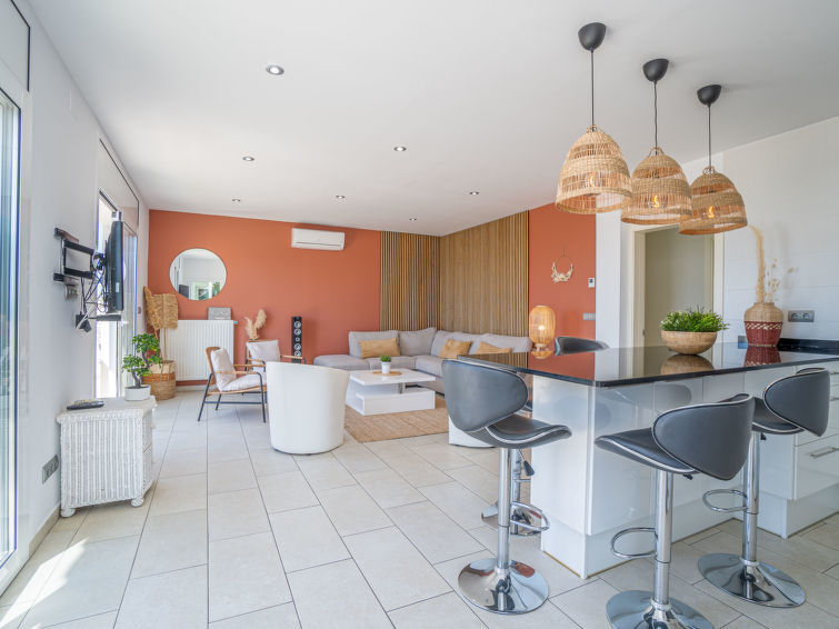 Groot, moderne, gezellige villa "Panorama", van 2 verdiepingen. In de plaats Palau Savardera, 8 km van het centrum van Roses, rustige, zonnige ligging villa wijk, gebied met weinig verkeer, 7 km van zee, 7 km van het strand, op het zuiden. Voor alleengebruik: groot tuin op verschillende niveaus (omheind) met planten en bomen, openluchtzwembad hoekig (8 x 4 m, 100 - 200 cm diepte, seizoensgebonden beschikbaarheid: 01.Mei. - 30.Okt.) met trap. Terras, tuinmeubelen, barbecue, parkeerplaats (voor 3 auto's) op het terrein. Levensmiddelenwinkel 3 km, supermarkt 3 km, restaurant, bar, café 500 m, bushalte "Moventis estació bus Roses" 8.8 km, treinstation "Estación Tren Vilajuiga" 6 km, zandstrand "Roses" 9 km. Jachthaven 9 km, golfterrein (18 holes) 12 km, zeilschool 9 km, tennis 3 km, manege 5 km. Attracties in de buurt: Zona de padel con bar y restaurante 500 m, Parque Acuático Roses Aquabrava 3 km, Túnel del viento y Skydive Empuriabrava 12 km, Cadaqués 17 km, Museo Dalí Figueres 22 km, Castillo y festival de Perelada 15 km. Auto noodzakelijk. Groepen jongeren uitsluitend op aanvraag. De sleuteloverdracht vindt plaats bij het agentschap Interhome in Empuriabrava.