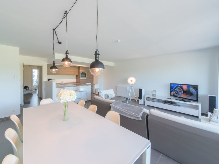 Moderne flatgebouw "Residentie Odyssea I", van 3 verdiepingen. Buiten de plaats, 3 km van het centrum van Bredene, 300 m van zee, 300 m van het strand. In het huis: lift, bergruimte voor fietsen. Openbare parkeerplaatsen 50 m. Supermarkt 1 km, restaurant 2 km, tramhalte "Duin en zee" 950 m, bushalte "De Lijn" 150 m, treinstation "Oostende" 5 km, zandstrand "bredene" 500 m. Attracties in de buurt: Fort Napoleon 1 km, Hangtime trampolinepark 950 m, De spuikom (waterstport) 2 km, Oostende 4 km, Brugge 31 km, Plopsaland De Panne 57 km. Groepen jongeren niet toegestaan.