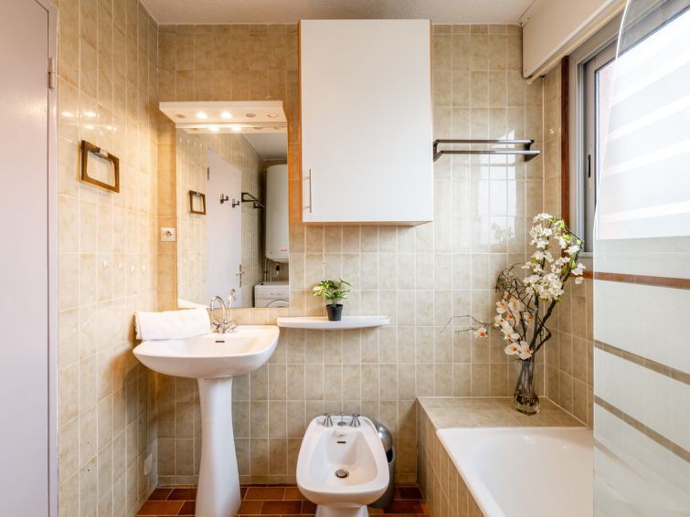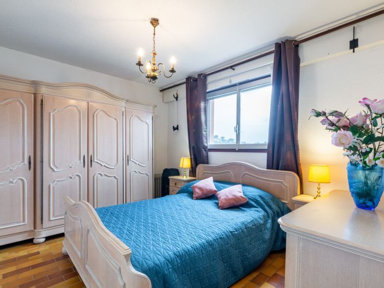 Appartement 2-kamers 50 m2 op de 4e verdieping, op het zuidoosten gelegen. Eenvoudig en rustiek ingericht: woon-/eetkamer met 1 2-pers kastbed (1 x 140 cm, lengte 190 cm), TV en air-conditioning. Uitgang naar het terras. 1 kamer met 1 bed (140 cm, lengte 190 cm). Kookhoek (afwasmachine, 1 keramische glas kookplaat, 4 kookpitten (vlammen), broodrooster, waterkoker, magnetron, diepvriezer, elektrische koffiemachine). Bad/WC. Elektrische verwarming. Terras 10 m2. Terrasmeubelen. Uitzicht op zee, het zwembad en de tuin. Ter beschikking: wasmachine. Internet (Internet (WiFi), gratis). Parkeerplaats. Niet rokers woning. 1 klein huisdier/hond toegestaan. Rookmelders. Aanbod door een particulier volgens art. 155, IV van CGI. 83115003222AK