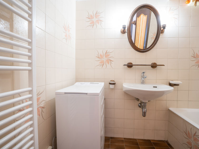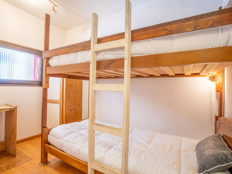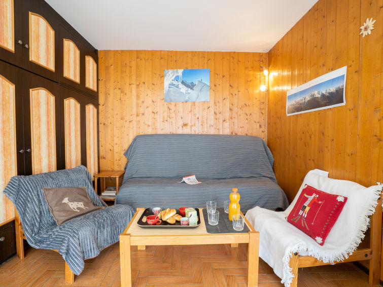 Appartement 3-kamers 52 m2 op de 3e verdieping. Zeer eenvoudig ingericht: woon-/eetkamer met 1 2-pers divanbed (140 cm, lengte 190 cm), TV en Flatscreen TV. Uitgang naar het balkon. 1 kamer met 1 2-pers bed (140 cm, lengte 190 cm). 1 kleine kinderkamer met 1 x 2 stapelbedden (90 cm, lengte 190 cm). Open keuken (oven, afwasmachine, 4 keramische glas kookplaten, waterkoker, magnetron, elektrische koffiemachine, raclette oven). Badkamer, aparte WC. Elektrische verwarming. Klein balkon 3 m2, op het zuidwesten gelegen. Zeer mooi uitzicht op de bergen. Ter beschikking: wasmachine. Internet (WiFi, extra). Niet rokers woning. TV alleen FR. Rookmelders. 74143000337JO