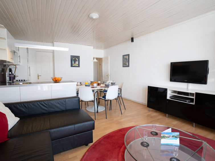 Appartement 3-kamers 46 m2 op de 1e verdieping. Ruim en licht, volledig gerenoveerd, comfortabel en gezellig ingericht: woon-/eetkamer met 1 2-pers divanbed (140 cm), TV (Flatscreen TV), DVD. 1 kleine kamer met 1 2-pers divanbed (140 cm). 1 kamer met 1 2-pers bed (140 cm), TV (Flatscreen TV), DVD. Open keuken (afwasmachine, 4 keramische glas kookplaten). Badkamer, aparte WC. Groot terras 16 m2, op het zuidwesten gelegen. Terrasmeubelen, ligstoelen (2). Zeer mooi panoramazicht op de bergen en de skipiste. Ter beschikking: wasmachine, droger. Internet (Internet (WiFi), gratis). Geschikt voor families. Rookmelders. Let op: niet-rokers appartement. De TV van de woonkamer is voorzien van een homecinema.