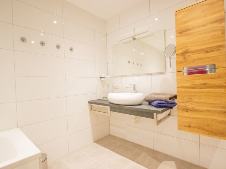 "Runhof Living", appartement 2-kamers 70 m2, op verhoogde begane grond. Ruim en licht, zeer comfortabel en stijlvol ingericht: hal. 1 2-pers. kamer met TV. Uitgang naar het terras. Woon-/eetkamer met 1 2-pers divanbed en TV. Uitgang naar het terras. Keuken (oven, afwasmachine, 4 inductiekookplaten, broodrooster, waterkoker, diepvriezer, elektrische koffiemachine) met eettafel. Bad/douche, aparte WC. Verwarming. Parketvloeren. Groot terras, op het noorden gelegen en op het westen gelegen. Terrasmeubelen, ligstoelen (2). Mooi panoramazicht op de bergen. Ter beschikking: wasmachine, kinderstoel, kinderbed, haardroger. Internet (WiFi). Garage. Niet rokers woning. Maximaal 1 huisdier/hond toegestaan. Rookmelders.