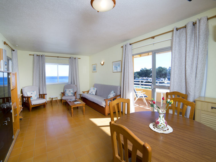 "Voramar", appartement 4-kamers 122 m2 op de 3e verdieping. Ruim en licht, comfortabel en gezellig ingericht: woon-/eetkamer met 1 divanbed, Digitale TV, air-conditioning en heteluchtverwarming. Uitgang naar het terras. 1 kamer met 2 bedden (90 cm, lengte 190 cm). 1 kamer met 1 2-pers bed (135 cm, lengte 190 cm). Uitgang naar het terras. 1 kamer met 2 bedden (90 cm, lengte 190 cm), air-conditioning en heteluchtverwarming. Keuken (4-pits kookplaat, oven, magnetron). Uitgang naar het terras. Bad/bidet/WC. 2 groot terrassen. Terrasmeubelen. Zeer mooi panoramazicht op zee en het zwembad. Ter beschikking: wasmachine, strijkijzer, kinderstoel, kinderbed tot 2 jaar. Internet (WiFi, gratis). Garage nr. 22, hoogte 300 cm, breedte 500 cm. Parkeerplaats alleen voor een kleine auto. AT-461229-A // Reg. Nr.: ESFCTU00000302900034183500000000000000000AT-461229-A6
